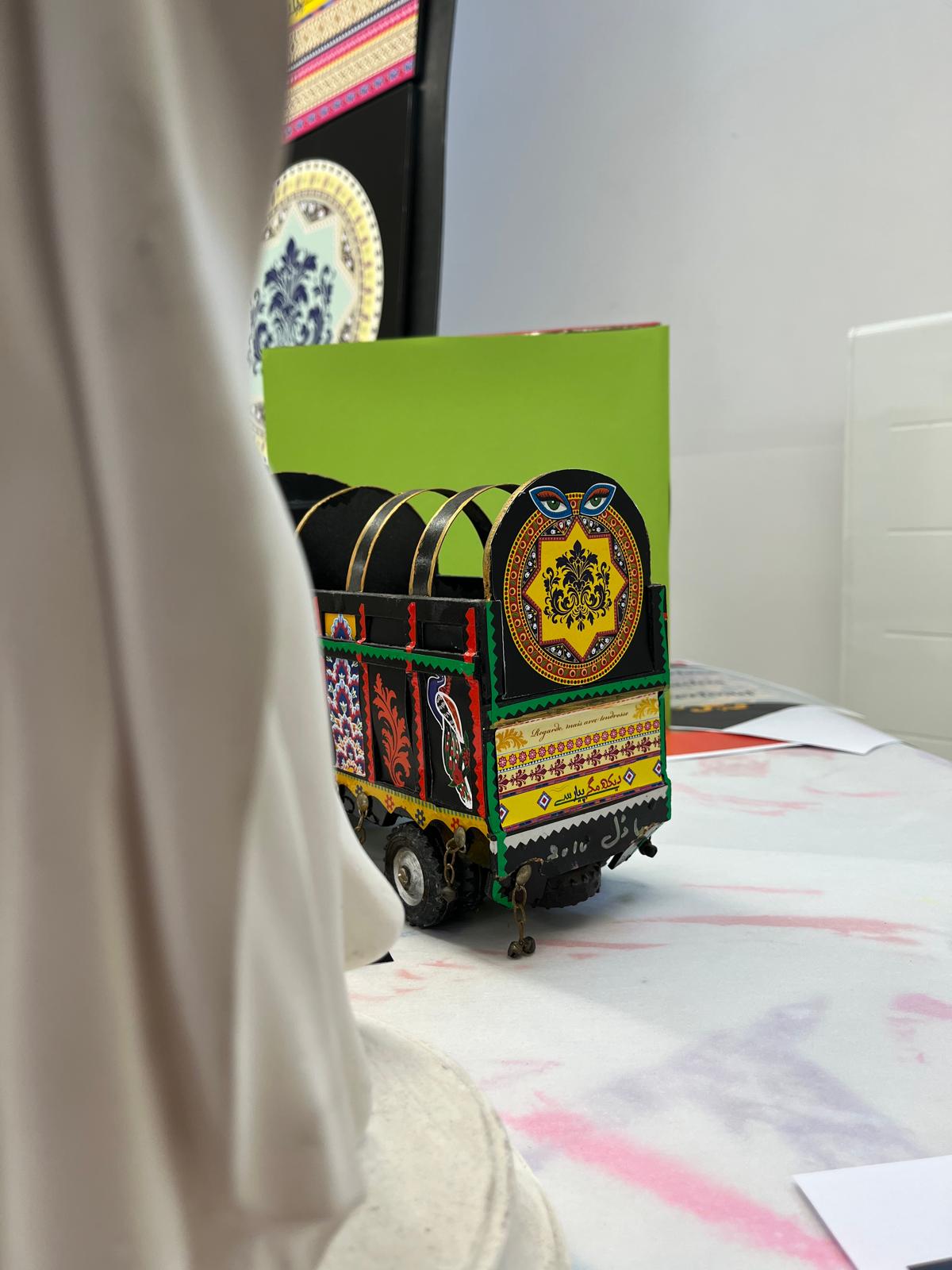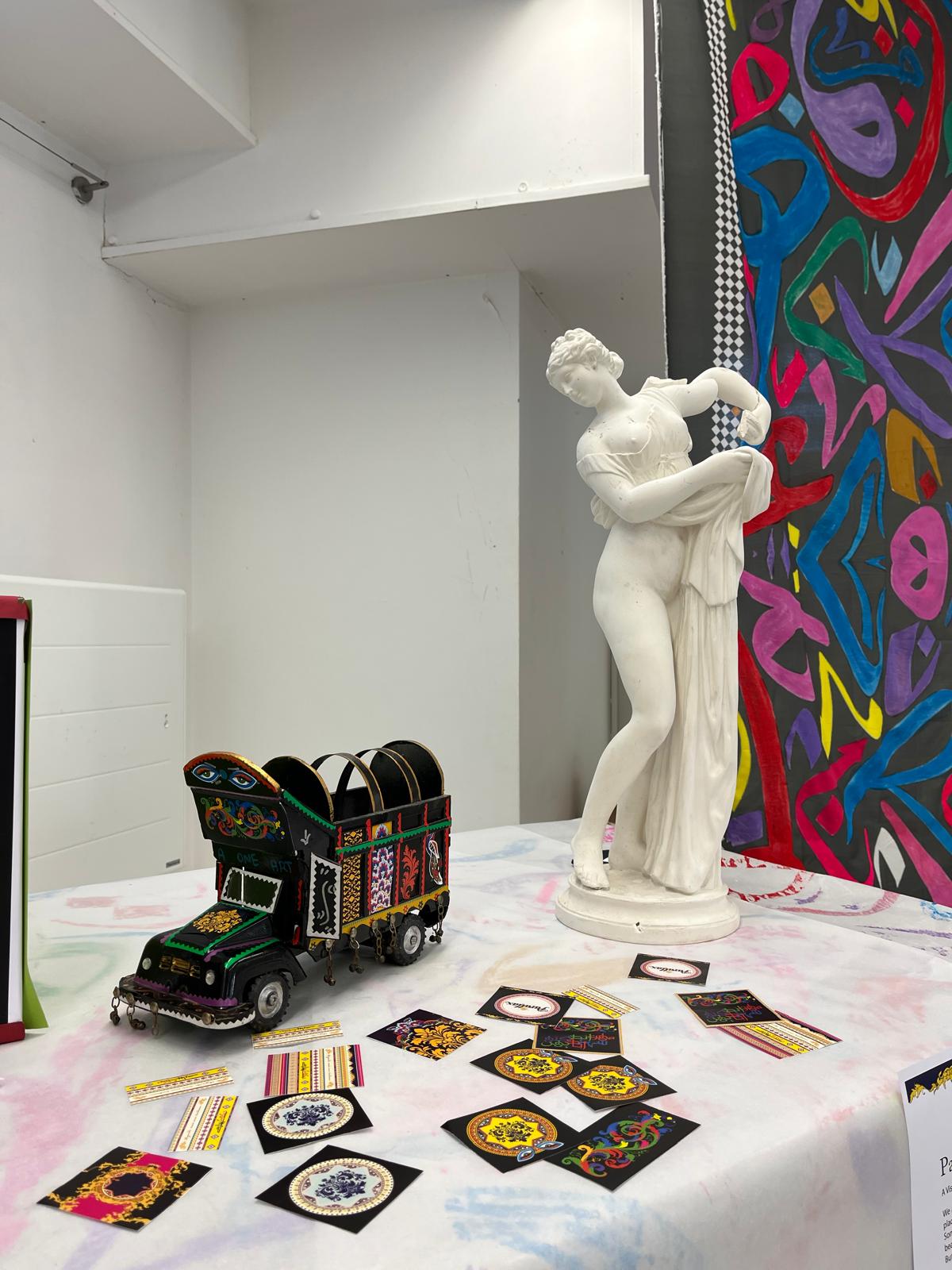 Parallax explores layered cultural identity through the fusion of South Asian Truck Art and French Rococo.